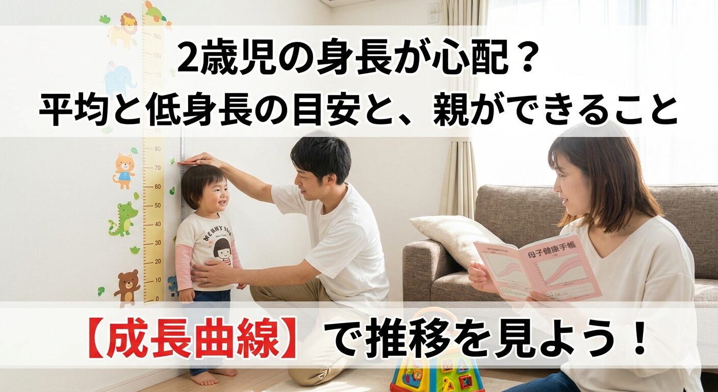 2歳は個人差がかなり大きい時期です。1回の数字だけで判断せず、母子健康手帳の成長曲線に沿って伸びているかを見るのが大事ですよ。