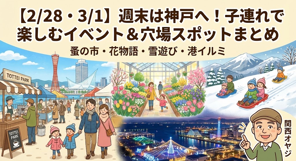 この記事では、2月28日(土)と3月1日(日)に行きやすい神戸のイベントを、「屋外・屋内・夜景」に分けて整理しました。