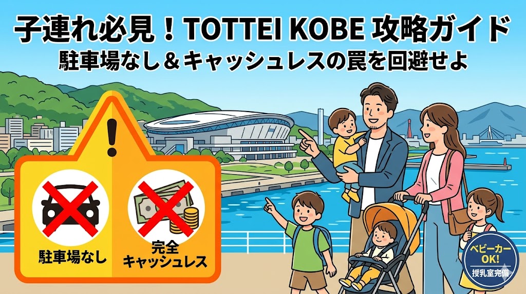 TOTTEI KOBEには一般来場者向けの駐車場がありません。公式では「三宮から連節バス(ポートループ)等をご利用ください」と案内されています。